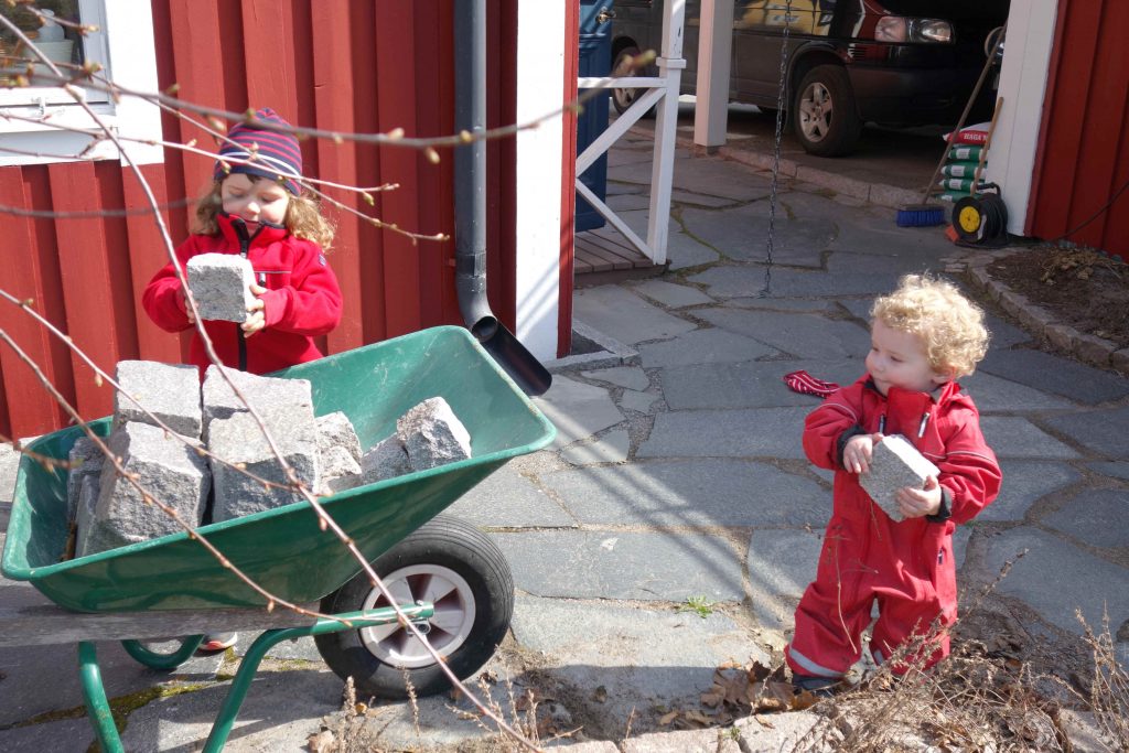 Left: Child Labour is a good way to save your back. Center: Even more stonework Right: stone and green, a good combo.