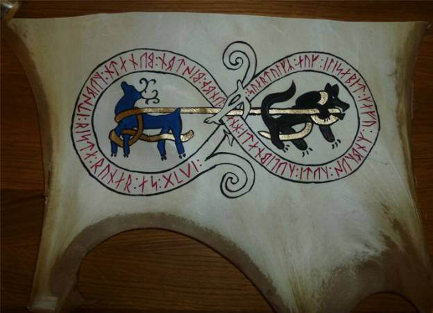 There are many ways to make a scroll, above are a few “portable” runestones made from slate above and below two horns and a shield.